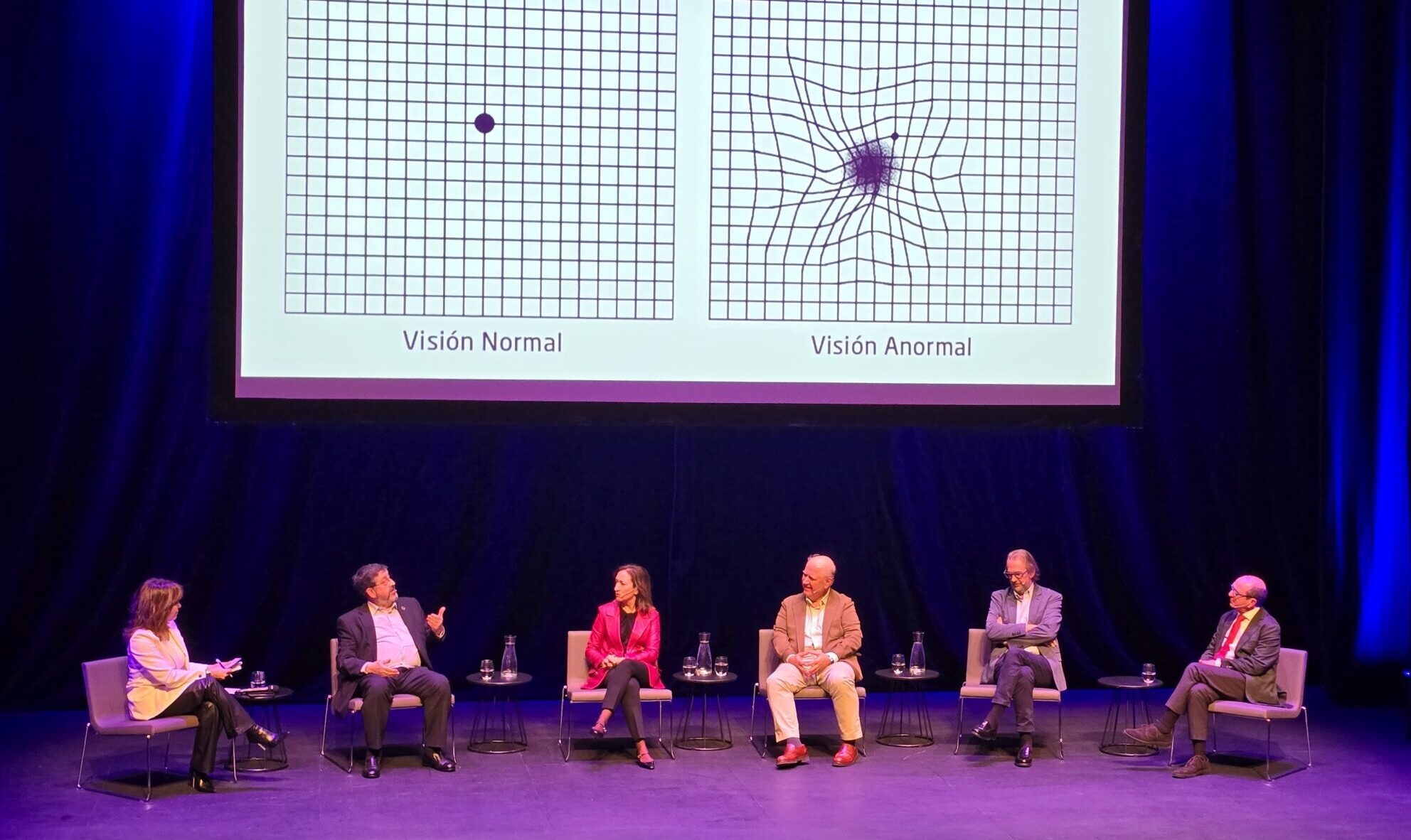 Tras la proyección, tuvo lugar una mesa redonda moderada por la conocida periodista de La Sexta Helena Resano, en la que participaron el presidente de la Sociedad Española de Retina y Vítreo (SERV) y director de Oftalmología de la Clínica Universidad de Navarra (CUN), Alfredo García Layana; el jefe del servicio de Oftalmología del Hospital Universitario de Navarra (HUNA), Daniel Aliseda; la jefa del servicio de Farmacia del HUNA, Maite Sarobe Carricas; el director gerente del Servicio Navarro de Salud‑Osasunbidea, Jon Guajardo Remacha; y el presidente de la Asociación Mácula‑Retina, Pedro Rascón.